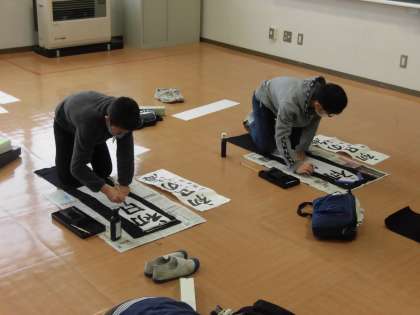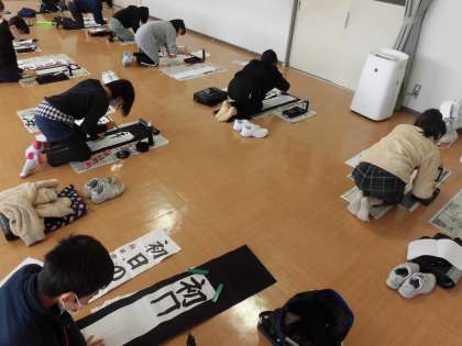 書初め大会では、集中して一画ずつ丁寧に書きました。冬休み中の練習の成果を発揮する子供たちでした。
