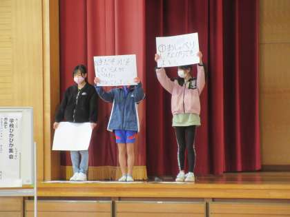 久しぶりの全校集会でした。環境委員会は正しい掃除の仕方について、クイズ形式で分かりやすく全校のみんなに伝えました。