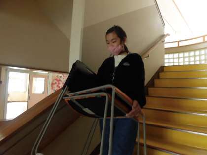 卒業式前日準備の様子(5年生)