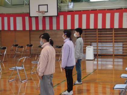 卒業式の前日準備では、いすを運んだり、飾り付けをしたりしました。また、在校生代表の言葉の練習も頑張りました。
