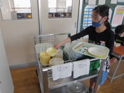 給食の準備・片付けを自分たちでとても上手にしています。残食なしでもりもり食べる4年生です。食後は読書をして落ち着いて過ごしています。