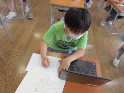 みんなで話し合って、学級目標を考えました。その後、学級目標に飾り付けるマークをつくりました。「友達と支え合う」「チャレンジする」ことを大切にしたいと考える子供たちです。