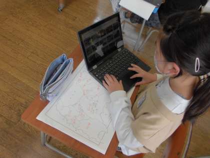 社会科では、富山県の市町村について調べました。地形によって観光や食にも特徴があることに気付きました。