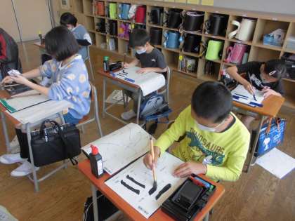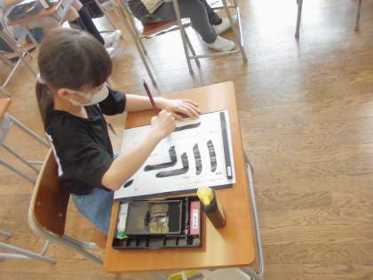 4年生になって初めての書写の時間。点画の種類を確かめて何度も練習しました。集中して学習しました。
