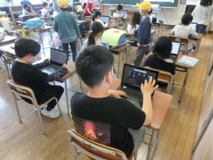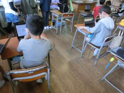 2年生は、朝の後片付けや準備が終わった子供から、さっそくタブレットでお絵かきソフトなどを使っています。