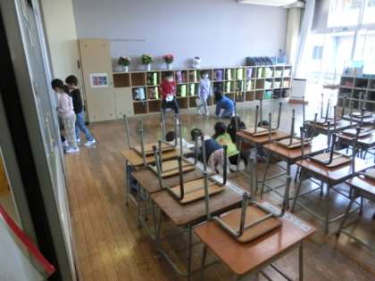 4月22日(金) 清掃の様子 公開日 2022/04/22 更新日 2022/04/22 学校から連絡 低学年はみんなで協力して教室のぞうきんがけ、中学年は廊下のはきそうじ、高学年はトイレそうじなど、全校で分担して清掃活動に取り組んでいます。
