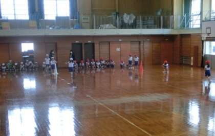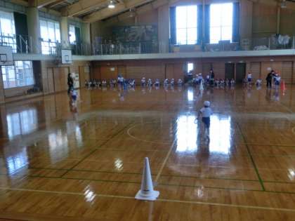 1・2年生が、運動会に向けてリレーの練習をしています。1年生は初めての運動会。丸いバトンを渡したりもらったり折り返して走ったりする仕方を学び、力一杯走ります。