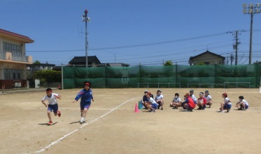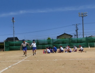 5・6年リレー練習で、今日は各団ごとに走りました。高学年らしく、後ろを見ないでリードし、スピードに乗ったバトンパスができています。本番の競走が楽しみです。