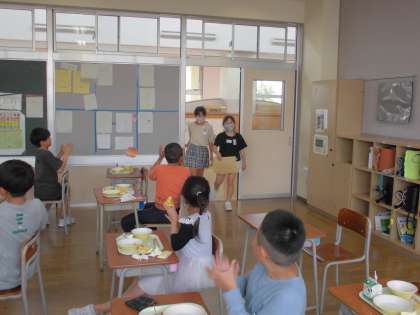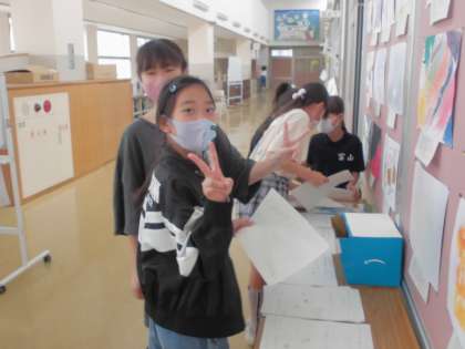 コンピュータ係の子供たちが、お昼の全校放送でアンケート協力のお願いをしました。緊張しながらも、はきはきと話すことができました。針っ子の好きな給食やキャラクター等を集計して、パソコンでグラフにしようと計画しています。