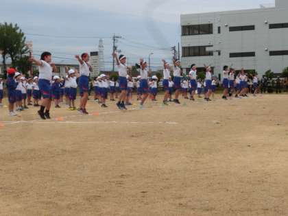 6年生が中心となって、エールやダンスを披露しました。下級生も、手拍子や拍手で応援します。