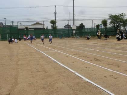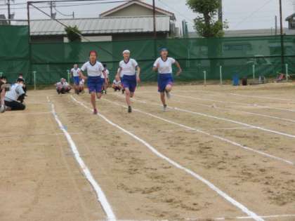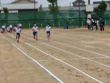 最初の種目は50m走です。子供たちが一生懸命に走る姿を見て、保護者の方々も拍手で応援されます。