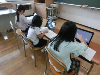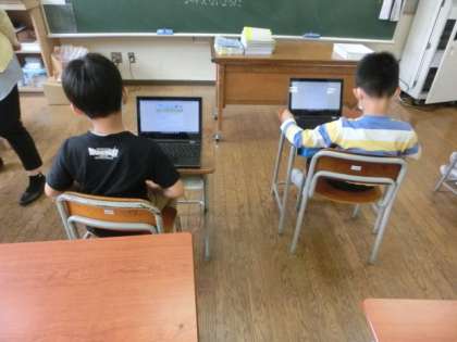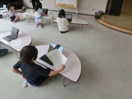 2年生が、生活アンケートをタブレットで答えています。3グループに分かれて、文をよく読んで、自分の生活について当てはまる番号をクリックしていました。