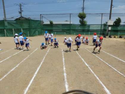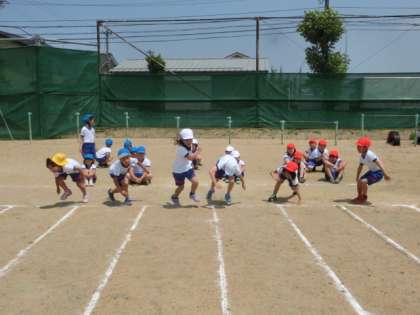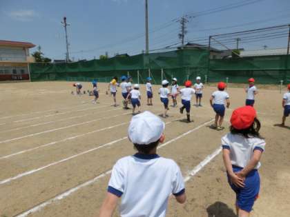 5月19日(木)2年生 いろいろスタートダッシュ! 公開日 2022/05/19 更新日 2022/05/19 学校の様子 2年生が、いろいろなスタートの仕方で走る練習をしました。立って、座って、後ろ向き、寝て、などの姿勢から素速く起き上がって、前を向いて走ります。スキップ、後ろ走りなどにも挑戦しました。(※倒れているのではありません。)