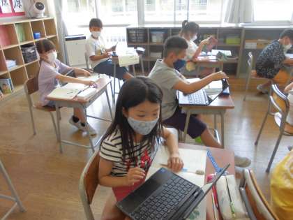 国語では「カンジーはかせの都道府県の旅」を学習しました。都道府県名の漢字を使って文章をつくりました。都道府県の名産や観光に注目しながら楽しく学習しました。