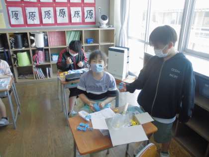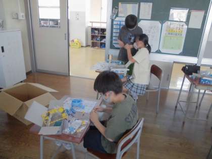理科では「電流のはたらき」の学習が始まりました。実験をするためのハンディファンの部品を組み立てました。友達と教え合って活動しました。