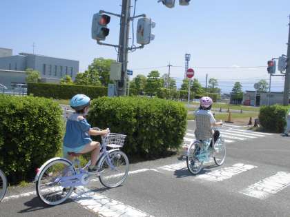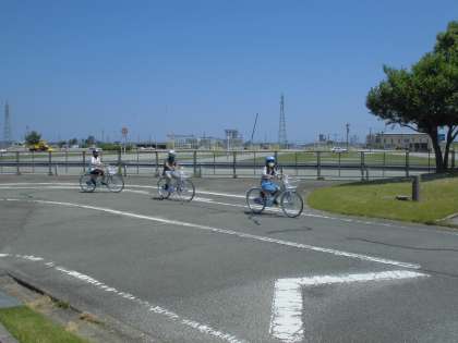 富山県交通公園で自転車教室を行いました。講師の方の話をよく聴いて、安全に運転するためのルールを学びました。