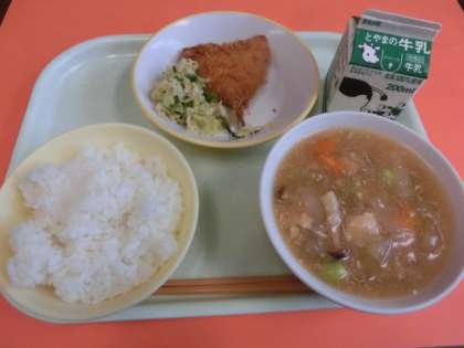 「ごはん、あじフライ、ごまびたし、とうがんのよしの煮」でした。
