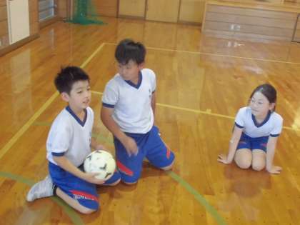 体育では、ポートボールの試合をしました。勝ち負けにこだわって一生懸命プレイする子供たちでした。フェアプレイを大切にするチームもみられました。