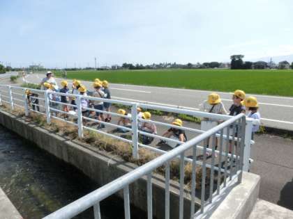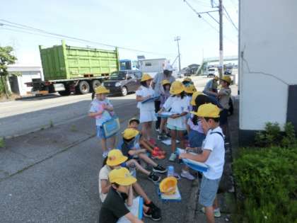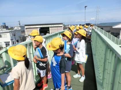 6月23日(木) 3年生 学校のまわりを調べよう1 公開日 2022/06/23 更新日 2022/06/23 学校の様子 3年生が、社会科で、学校の周囲を実際に歩いて、建物や土地の様子を調べています。今日は、学校の南側を歩きました。「大きな道路は車が多いね」「会社や病院、ケアハウスがあったよ」「田んぼや深い用水が多い」など、いつも見ている学校や家の周りにも、発見があったようです。