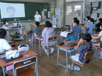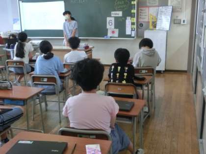 6月24日(金) 5年生 プレゼンテーションをしよう 公開日 2022/06/24 更新日 2022/06/24 学校の様子 5年生が、外国語科で、自分の名前、誕生日、好きなものなど、プロフィールを発表しています。今までタブレットで作成したプレゼンテーションを友達に見せながら、できるだけ英語で紹介しました。
