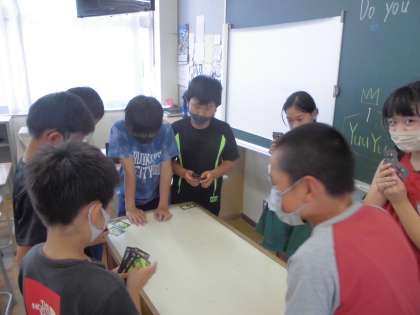 給食で出たバナナの皮でバナナアートをしたり、男女仲良くポーカーをしたりして、室内で楽しく過ごしました。