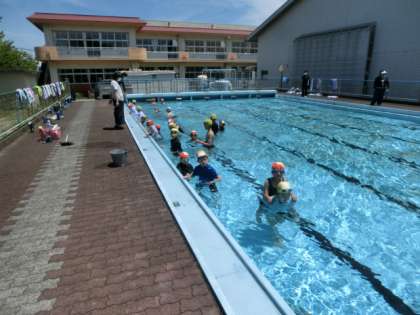 6月29日(水)「1・6年生でプールに入ったよ」 公開日 2022/06/29 更新日 2022/06/29 学校の様子 プール開きの後、1・6年生で、初めてプールに入りました。1年生が6年生に、おんぶやだっこをしてもらったり、手をつないで歩いたりしました。厳しい暑さのため、短時間の初泳ぎでしたが、気持ちよく仲よく入ることができました。ミニ動画クリック→1年6年プール1、1年6年で仲良くプール、1年6年プール3、6年バタ足