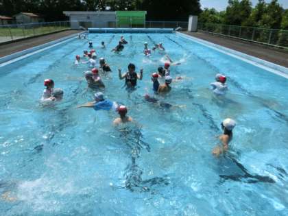 6月30日(木) 2・5年生合同水泳学習 公開日 2022/06/30 更新日 2022/06/30 学校の様子 2年生と5年生がペアになって、初泳ぎをしました。2年生は昨年度の経験があるものの、泳ぎに自信のないな場合は、5年生が2年生をおんぶやだっこして歩く姿も見られました。厳しい暑さのため、20分ほどの短時間で、給水もとりながら気持ちよく入りました。 ミニ動画クリック→2・5年水中ジャンケン、2・5年水中競走