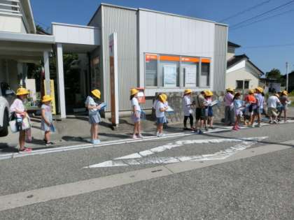 7月1日(金) 3年生 校区内たんけん2 公開日 2022/07/01 更新日 2022/07/01 学校の様子 先週に引き続き、社会科で学校の周りを探検した3年生。朝のうちに、短時間で学校の北側を歩きました。「お寺や神社もあるね」「小さい頃からお世話になっているところばかりだよ」保育園、郵便局、コンビニ、店などの施設を見つけ、地図にメモを書いていました。