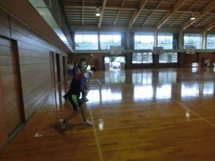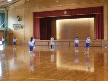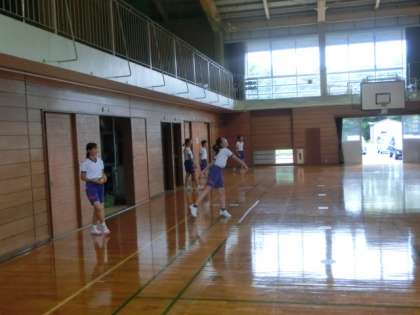 7月4日(月)6年生 ソフトボール投げの練習 公開日 2022/07/04 更新日 2022/07/04 学校の様子 9月には、市内全6年児童が参加する「富山市チャレンジ陸上記録会」があります。その一種目であるソフトボール投げの練習を始めています。今日は体育館で、柔らかいボールを使って投げ方を練習しました。 ★ミニ動画クリック→6年ソフトボール投げ練習