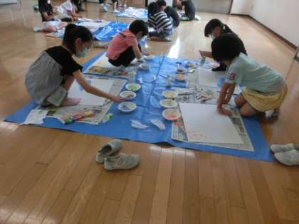 7月6日(水) 2年生 とろとろ絵の具でかく