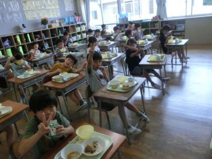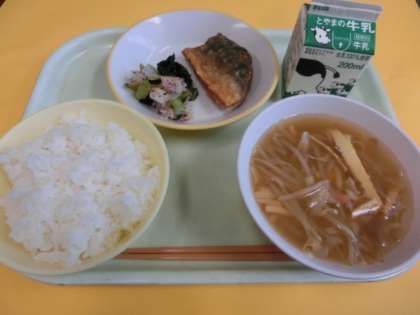 「ごはん、さばのたつた揚げ、梅肉あえ、わんたんスープ」でした。