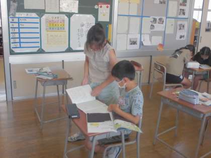 理科では、どうして星の色や明るさに違いがあるのかを調べ、友達と発表し合いました。また、星座早見の使い方を確認しました。