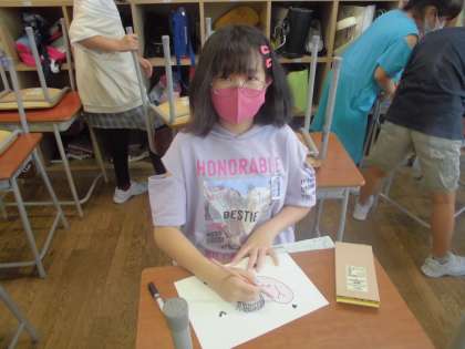 雨や猛暑のため、外で遊べない日の休み時間はイ、ラストをかいたり、友達と楽しく話したりしています。各自、思い思いの時間を過ごしています。