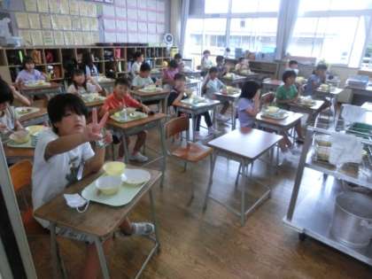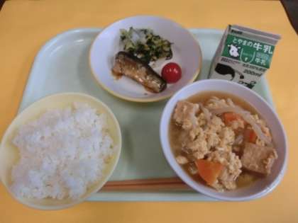 「ごはん、いわしのマーマレード煮、いそあえ、厚揚げのにしきとじ、ミニトマト」でした。1学期の給食も、あと2回(日)です。