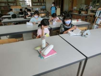 4年生は読書、5年生はビーチボールをしました。どの学年も、夏休み前に、本に親しんだり、しばらく会えなくなる友達みんなとの交流を深めたりしています。