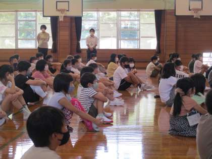 8月29日(月) 2学期始業式 公開日 2022/08/29 更新日 2022/08/29 学校の様子 今年度、式としては初めて体育館に全校児童が集まった2学期始業式。各学年で、1学期育てた野菜や花で、毎日の水やりや除草によって大きな実をつけたことから、「実りの秋」の2学期、一人一人に「実り」(成長やできるようになること、達成感)が増えることを願い、話をしました。(下の画像は、2年生が夏休みも世話をして実った「ピーマン」)