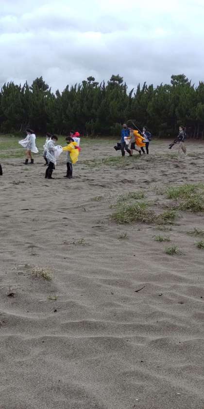 岩瀬浜で、プラスチックごみなどを拾う4年生。