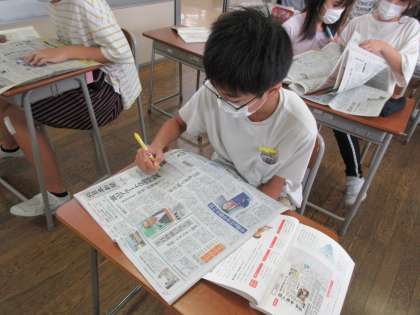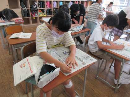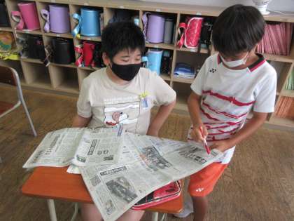 9月9日(金) 5年生 新聞を読もう 公開日 2022/09/09 更新日 2022/09/09 学校の様子 国語科で、新聞の読み方を学習しました。新聞の記事には見出しやリード文があり、読みやすいように工夫されていることが分かりました。
