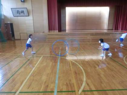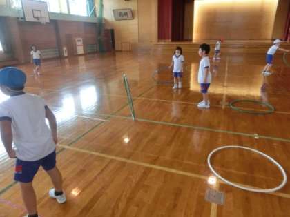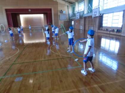 9月15日(木) 2年生 フラフープ遊び2 公開日 2022/09/15 更新日 2022/09/15 学校の様子 2年生は体育で、フラフープを使って、腰や胸で回す、手で回す、上に投げて捕る、相手に転がして投げるなどの練習をしました。これから学習発表会に向けて、フラフープ、なわとび、マット、跳び箱などのグループに分かれて練習を続けます。ミニ動画クリック→2年フラフープ投げ1、