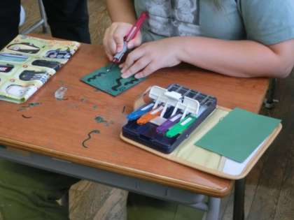 9月21日(水) 5年生 「ほってほっていろんな模様」1 公開日 2022/09/21 更新日 2022/09/21 学校の様子 5年生図画工作では、ゴム版画に取り組んでいます。自分で下書き模様をデザインして、どの彫刻刀を使えばきれいに彫れるか考えながら進めています。