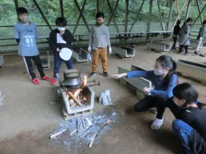 4年生 呉羽青少年自然の家で2 公開日 2022/09/28 更新日 2022/09/28 学校の様子 ターザンロープで遊んだ後、野外炊飯でカレーライスを作りました。少し米が焦げたグループもありましたが、どの斑もおいしく食べました。「楽しかったね。また行きたい!」来年度は、立山での宿泊学習を予定しています。クリック→どきどきターザンロープの動画
