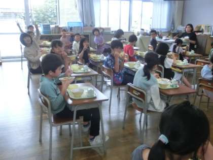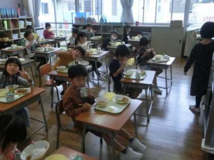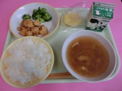 「ごはん、魚とひよこ豆のあまからめ、ゆでブロッコリー、さわにわん、冷凍りんご」でした。
