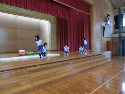 10月3日(月)2年生 マット忍者練習 公開日 2022/10/03 更新日 2022/10/03 学校の様子 2年生が学習発表会の練習をしています。マット忍者が、前転・側転などの技を何度も練習しています。「何回も練習して、目が回ったでござる・・・」ミニ動画クリック→2年マット忍者練習 他のグループも上達してきました。