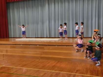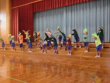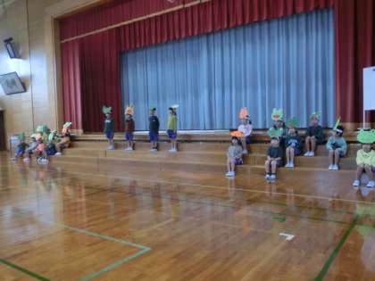 10月5日(水)1年生 劇の練習 公開日 2022/10/05 更新日 2022/10/05 学校の様子 1年生が、学習発表会の劇の練習をしています。ほぼせりふも覚えて、演技も加えて、マットや歌、群読などの発表も上達してきました。ご家庭で服装の準備等、ご協力ありがとうございました。本番が楽しみです! ミニ動画クリック→かえるの劇練習、1年マットがえる