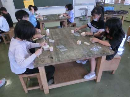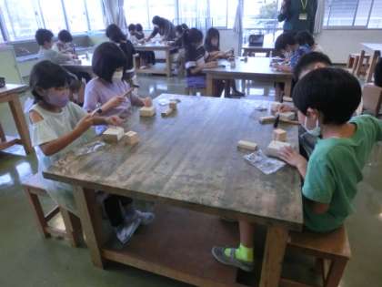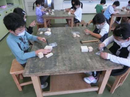 10月5日(水)3年生 くぎうちトントン1 公開日 2022/10/05 更新日 2022/10/05 学校の様子 3年生が、図画工作で、くぎ打ちの学習を始めました。器用に金づちを使って、くぎを木に打っていました。わざと斜めに打ったり曲げたり、違う厚さの木をくっつけたりと、打ち方を試しながら楽しんでいました。 ミニ動画クリック→くぎ打ち動画(音が大きいです)