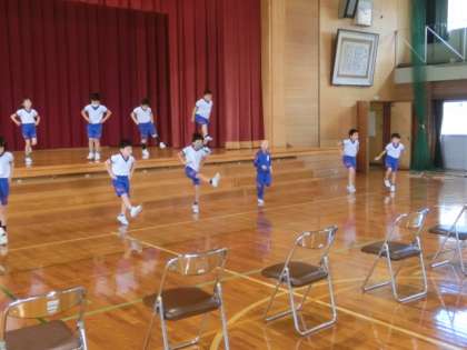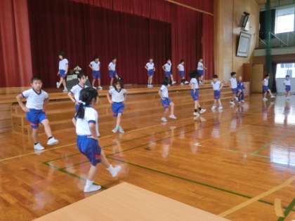 2年生が運動劇の練習をしています。マット、跳び箱、なわとび、フラフープ、ダンスの5種目の技を披露します。明日は校内発表会で、全校児童で見合います。ミニ動画クリック→