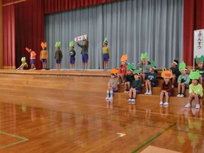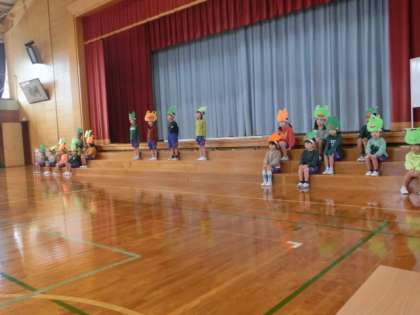 10月12日(水)校内学習発表会 1年生「げんきいっぱい かえるのがっこう」 公開日 2022/10/12 更新日 2022/10/12 学校の様子 今日は、子供たちが初めて他学年の発表を見合いました。1年生の劇では、かえるの子供たちが、こくごやさんすう、たいいく、おんがくなどの勉強でがんばっている姿を見せました。 ミニ動画集→1年動画1、1年動画2、1年マット動画、群読の動画、1年歌の動画