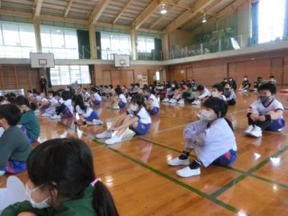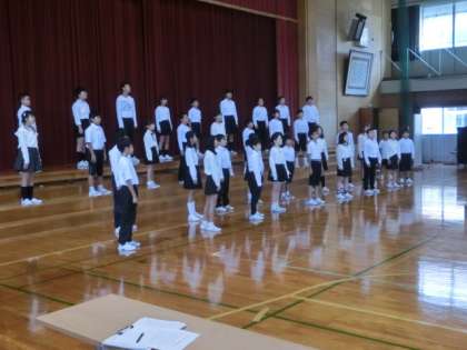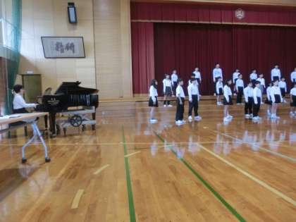 10月12日(水)校内学習発表会 4・5年生 合唱 公開日 2022/10/12 更新日 2022/10/12 学校の様子 4・5年生は、白の上着と、黒っぽいズボン、スカートなどの服装をそろえて合唱を発表ました。1曲目はチャレンジする明るい歌、2曲目はきれいなバラードの歌を披露しました。他の学年の子供も、静かに聴き入っていました。ミニ動画クリック→4・5年合唱1、4・5年合唱2、ピアノと、歌を聴く子供たちの動画 ※明日は、2年、6年の発表を紹介します。