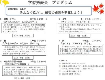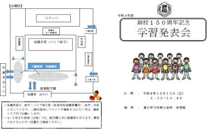 明日(10月15日)は、創校150周年記念学習発表会です。先日配付しましたプログラム(下記、