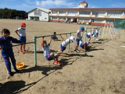 10月21日(金) 2年生 鉄棒練習1 公開日 2022/10/21 更新日 2022/10/21 学校の様子 2年生が体育で、鉄棒練習を始めました。技セブンにある、つばめ、ふとんほし、だんご虫、こうもりなどを、一人やみんなで挑戦しました。これからも続けます。ミニ動画クリック→2年鉄棒